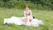 back  Sweet redhead nudist masturbating outdoor - Second camera (video)